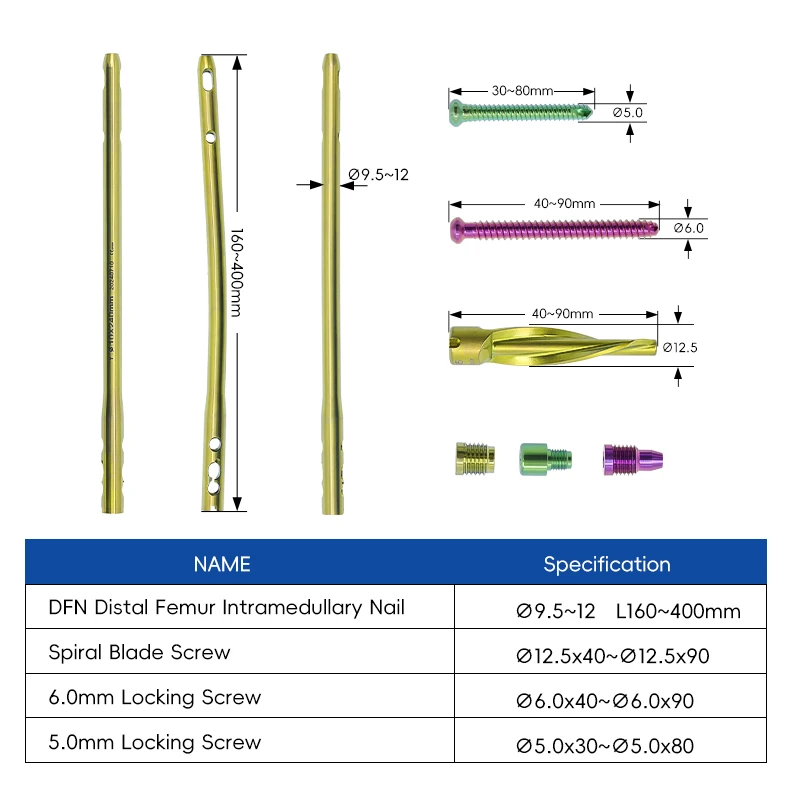 At OrthoPro, we specialize in delivering high-performance orthopedic solutions to the global medical community. Our Distal Femur Intramedullary Nail (DFN) represents the gold standard in retrograde intramedullary fixation. Specifically designed to address the challenges of fractures in the distal third of the femur, this system combines anatomical precision with biomechanical strength. It is the preferred choice for trauma surgeons treating supracondylar fractures, intra-articular extensions, and periprosthetic fractures where stable internal fixation is critical for early patient mobilization.